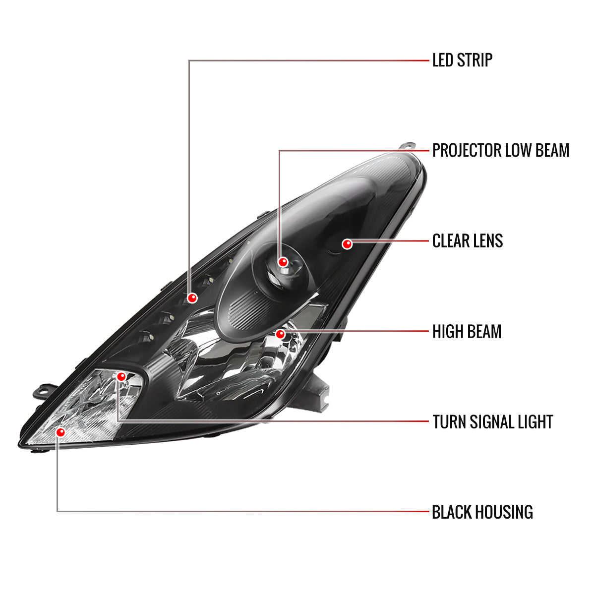 Spec-D 2000-2005 Toyota Celica Projector LED Black Headlights