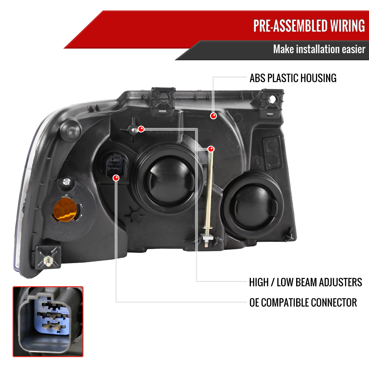 - Comes with 1 pair of black housing clear lens headlights with amber reflector