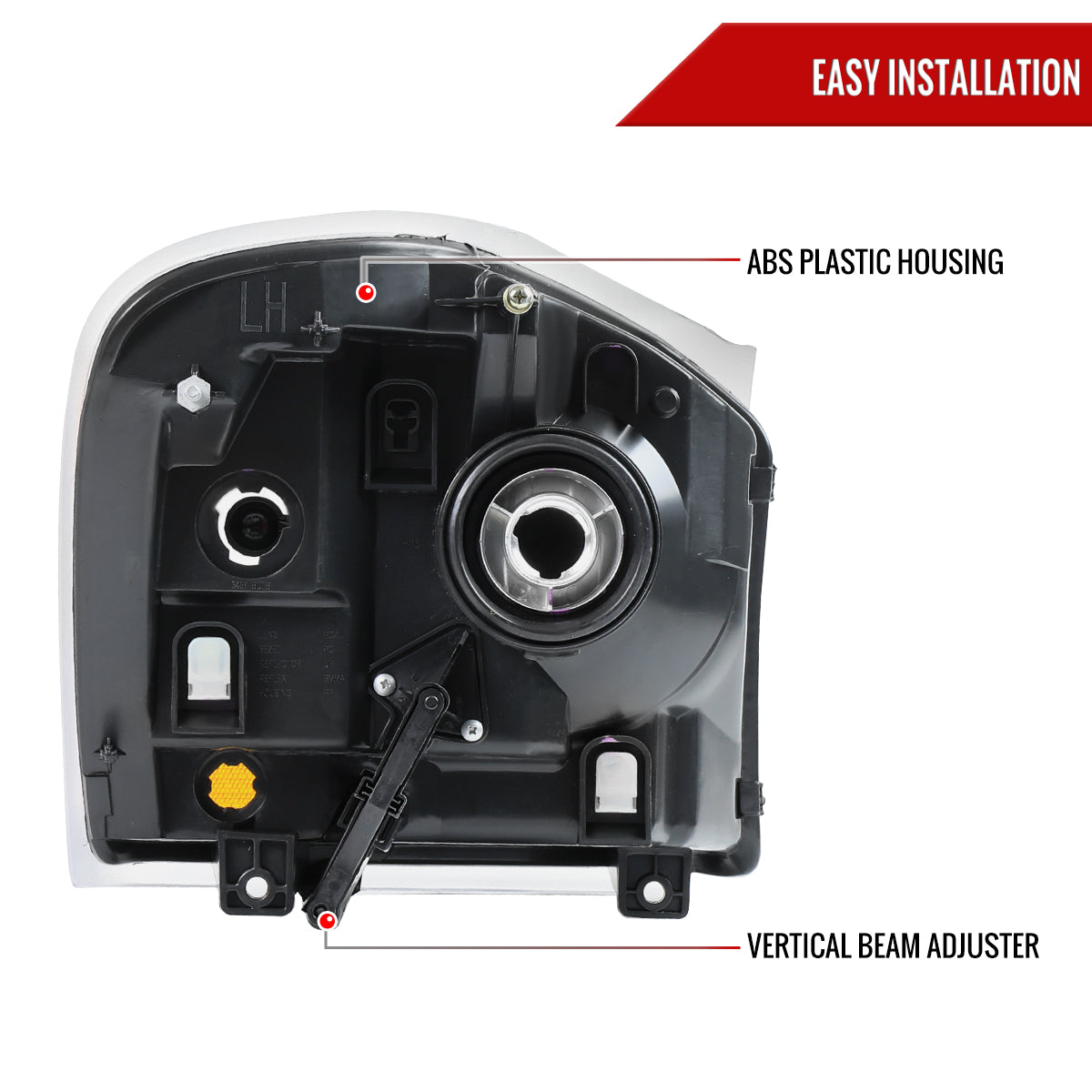 - Comes with (1) pair of matte black housing factory style headlights with clear lens and amber reflectors