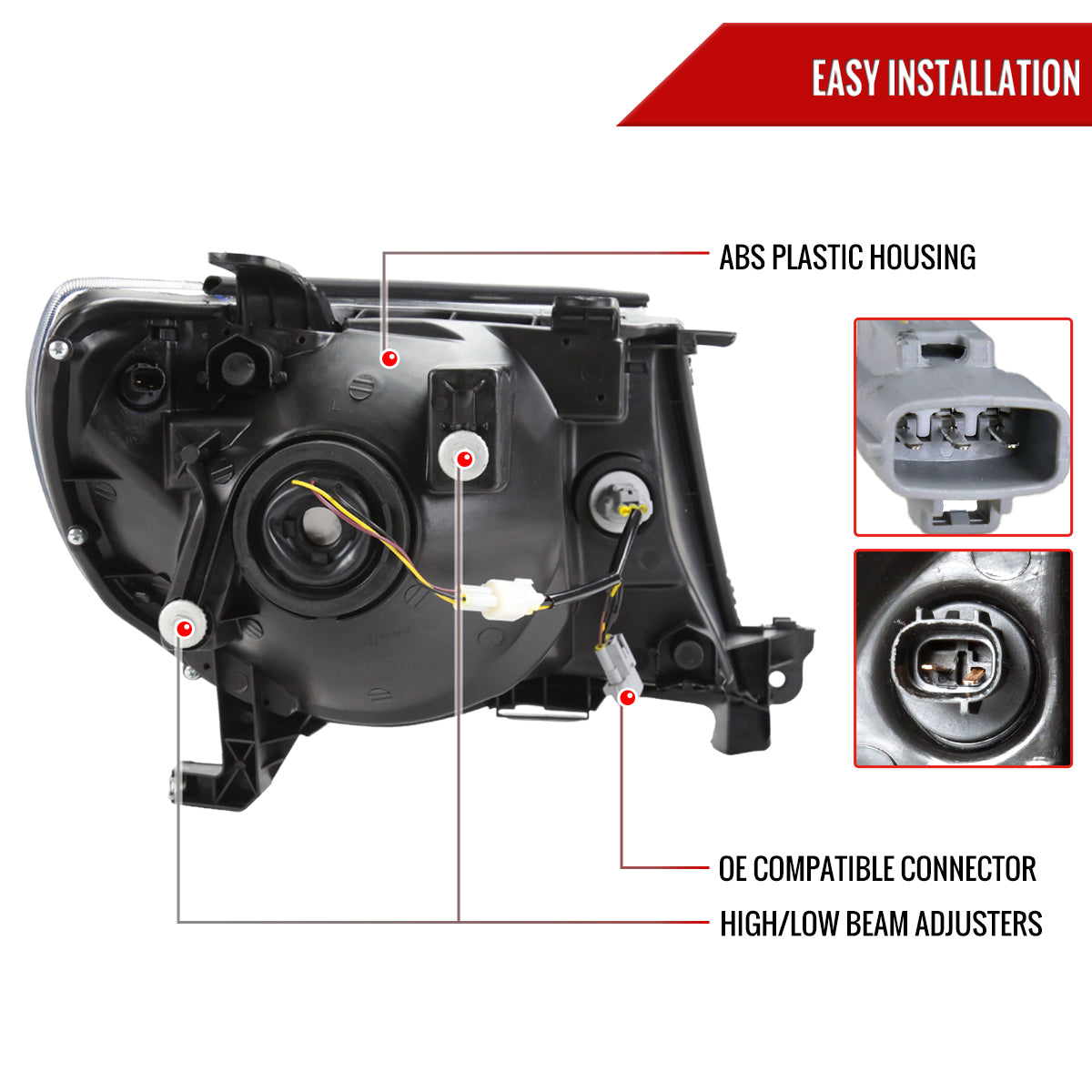 - Comes with (1) pair of matte black housing factory style headlights with clear lens