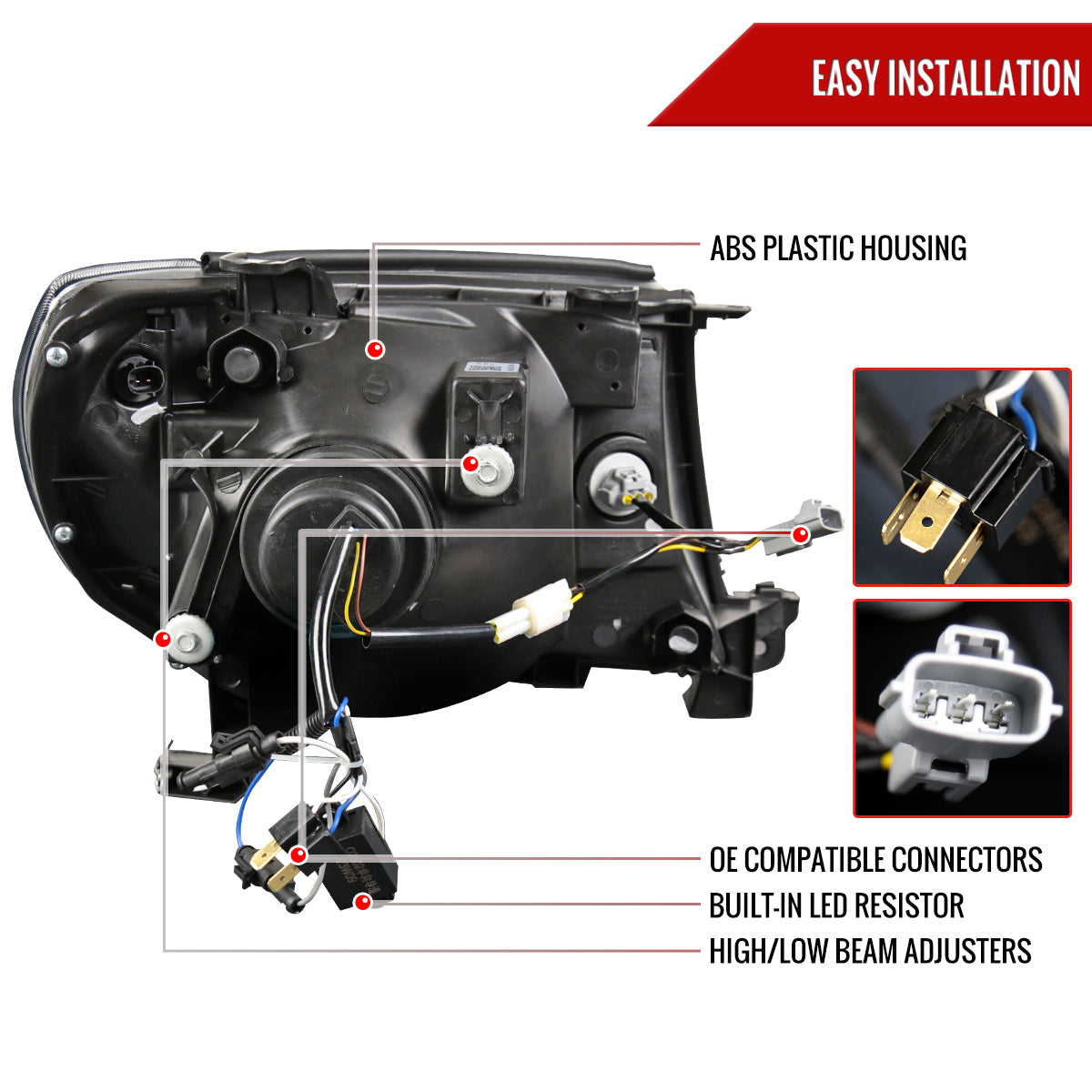 - Comes with (1) pair of matte black housing with clear lens projector headlights