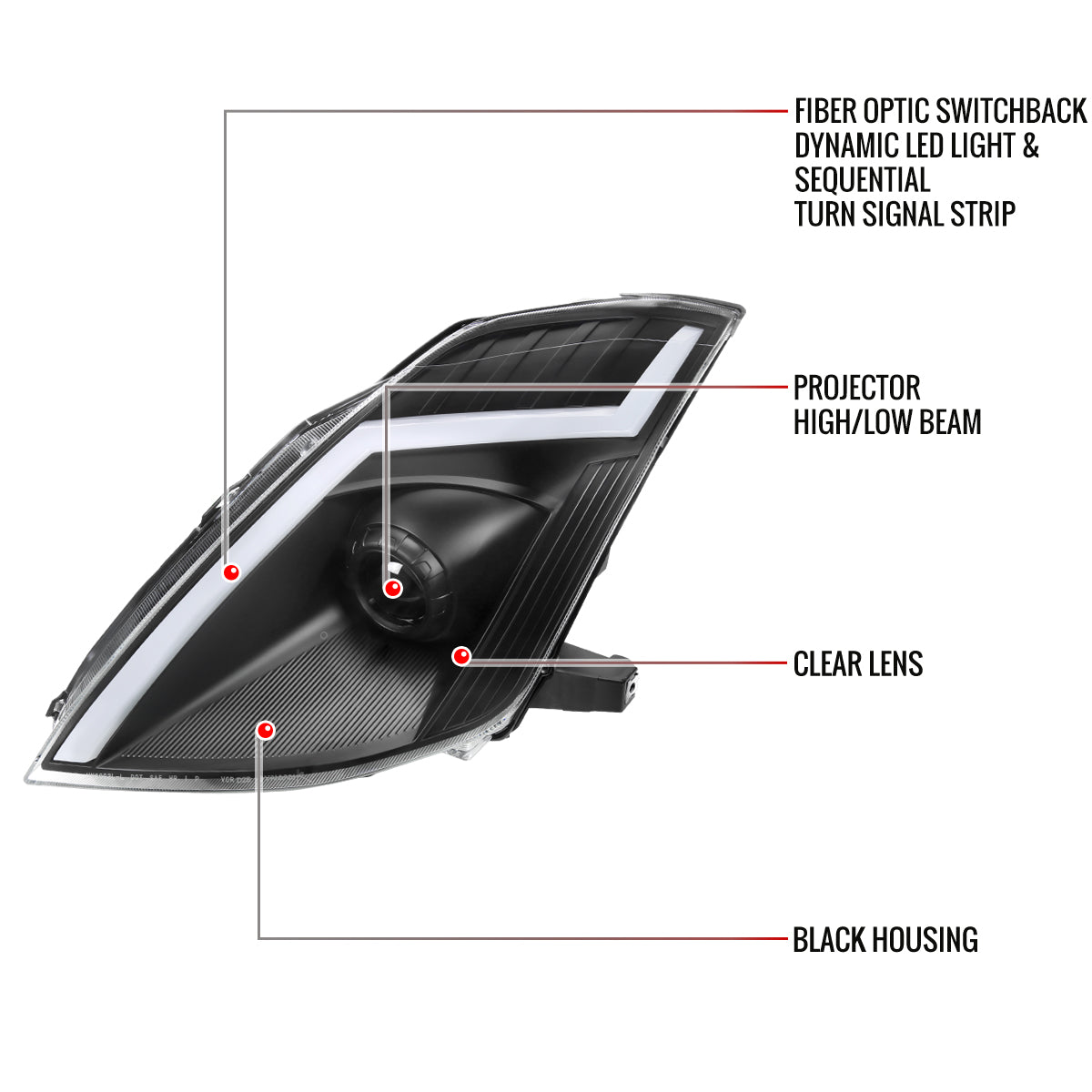 Spec-D 2006-2009 Nissan 350Z SEQ Projector Black Headlights 350Z06JM