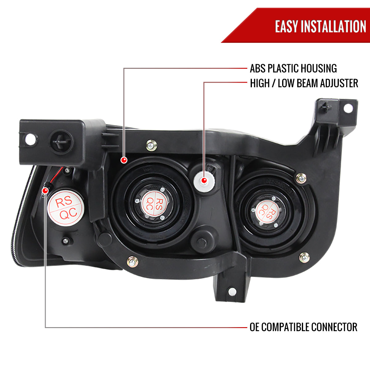 - Includes 1 pair of black housing, clear lens 1PC style headlights with SMD LED light strip & amber reflectors