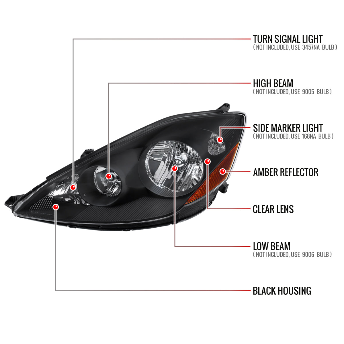 Spec-D 2006-2010 Toyota Sienna OE Style w/ Amber Reflector Black Headlights