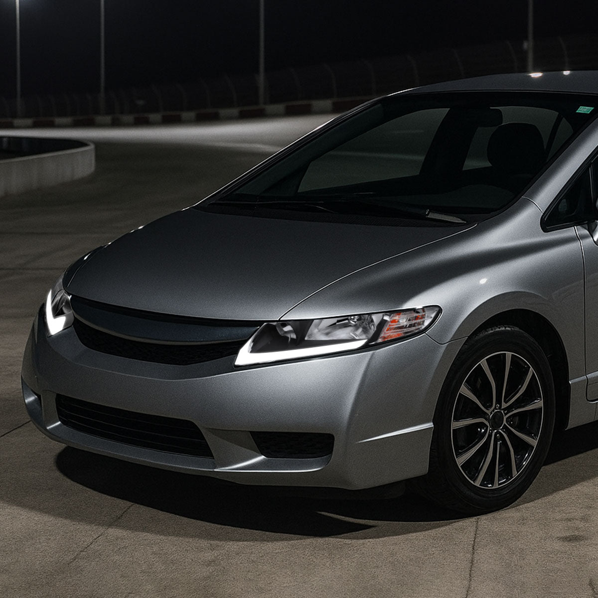 Spec-D 2006-2011 Honda Civic 4DR 4DR OE Style w/ LED Strip Black Headlights