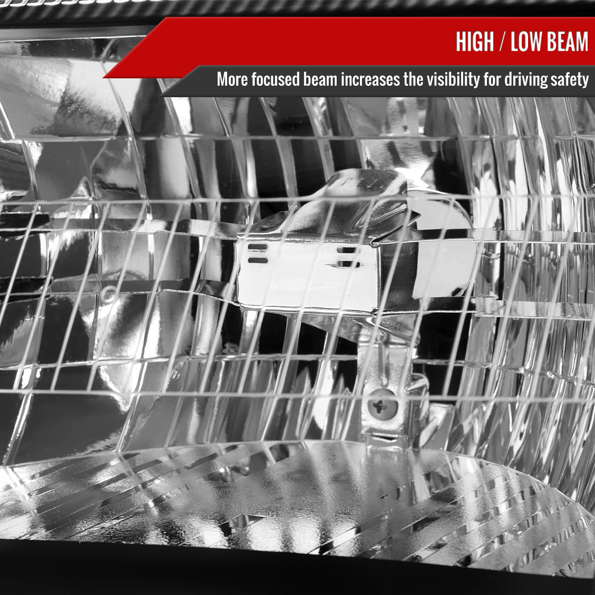- Comes with (1) pair of matte black housing factory style headlights and bumper corner lights with clear lens