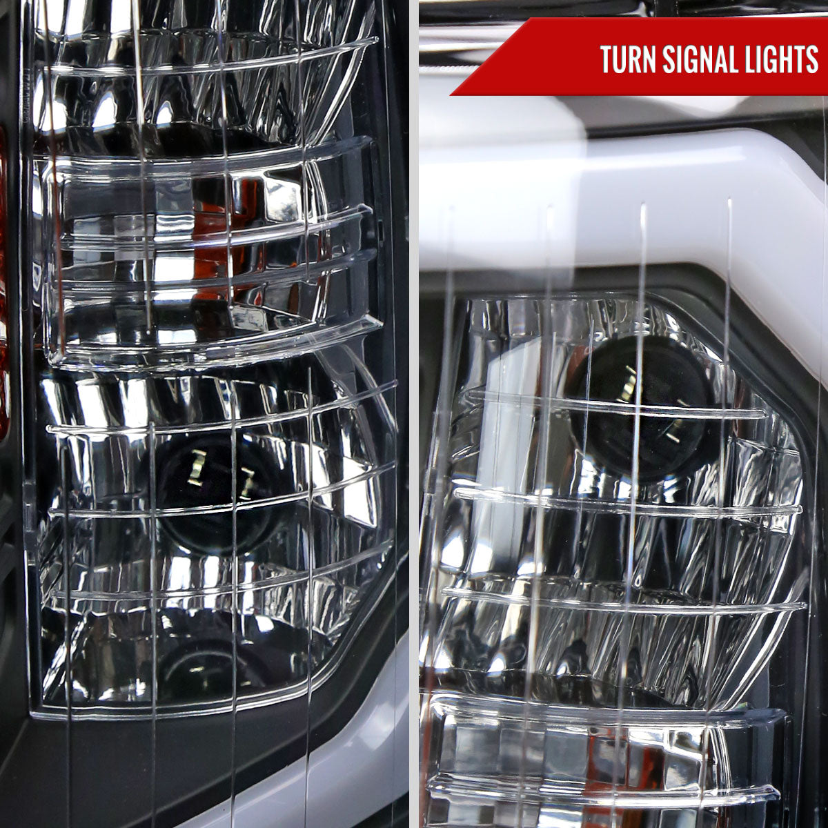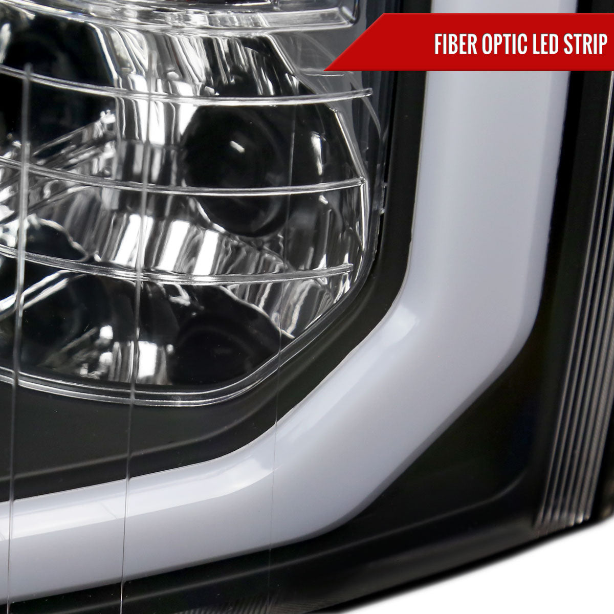 - Matte Black housing, clear lens LED C-bar factory style headlights with amber reflector