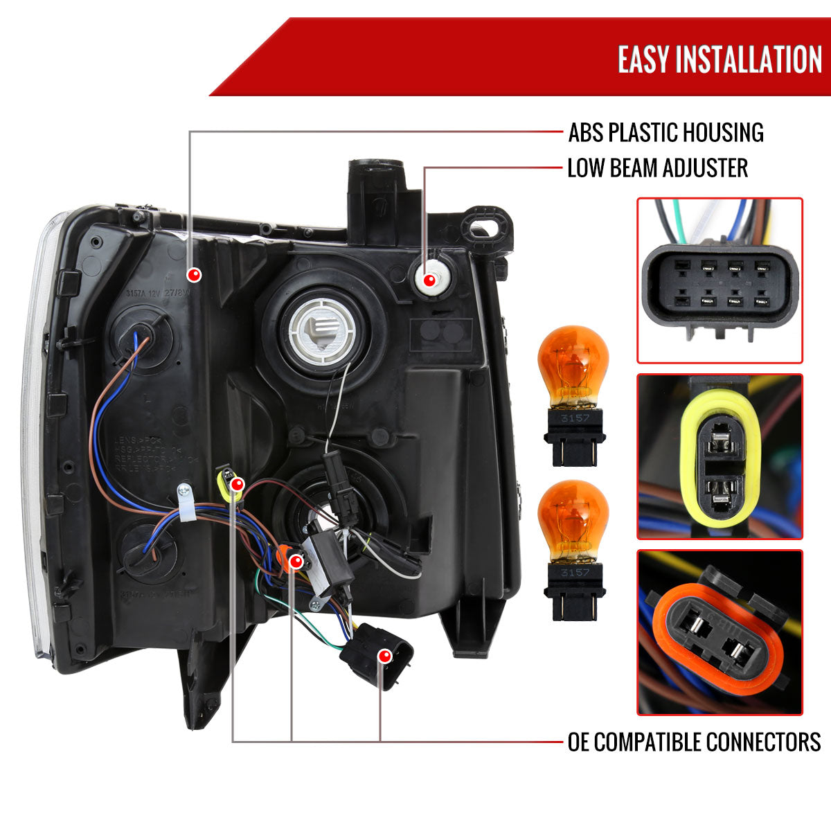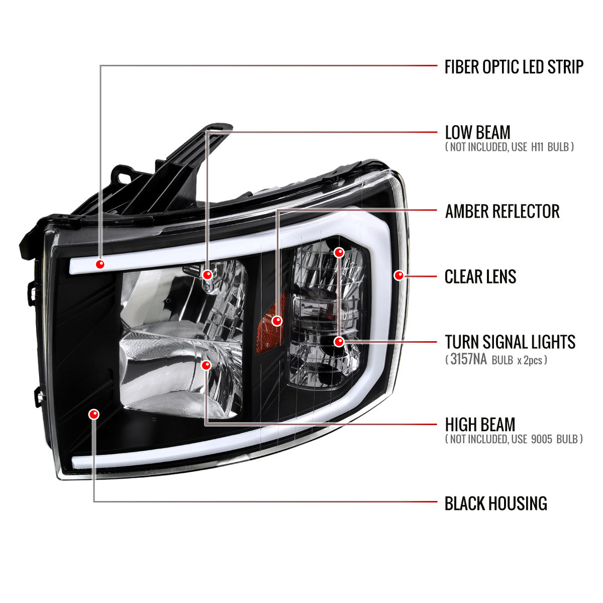 Spec-D 2007-2013 Chevrolet Silverado 1500/ 2007-2014 Silverado 2500HD 3500HD LED OE Style w/ Amber Reflector Black Headlights