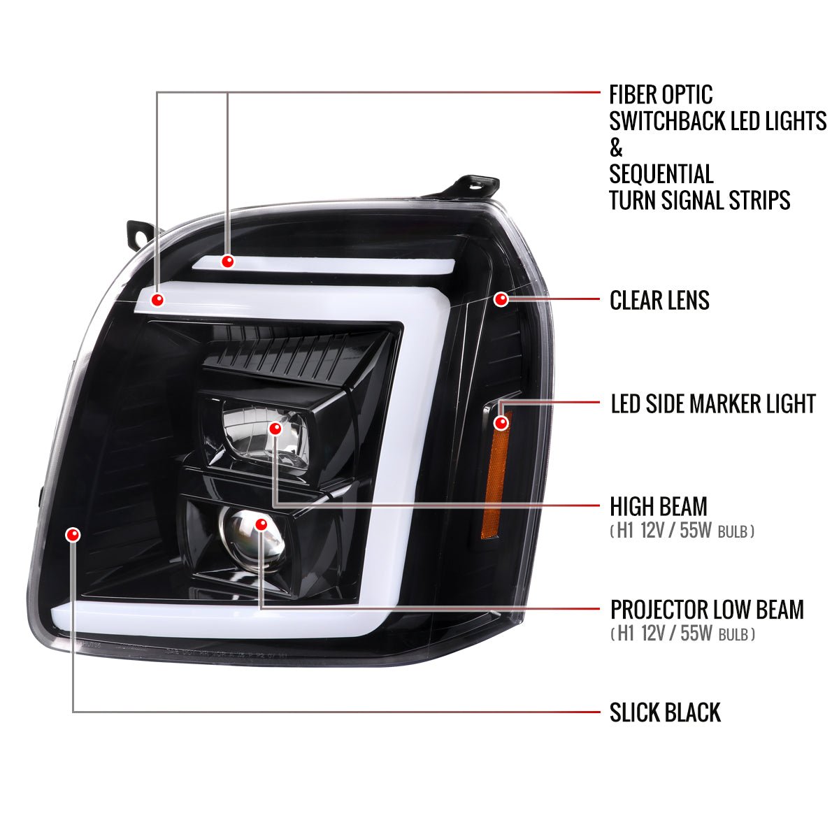 Spec-D 2007-2014 GMC Yukon/XL 1500/XL 2500 Switchback Sequential LED Turn Signal Projector J Black Headlights