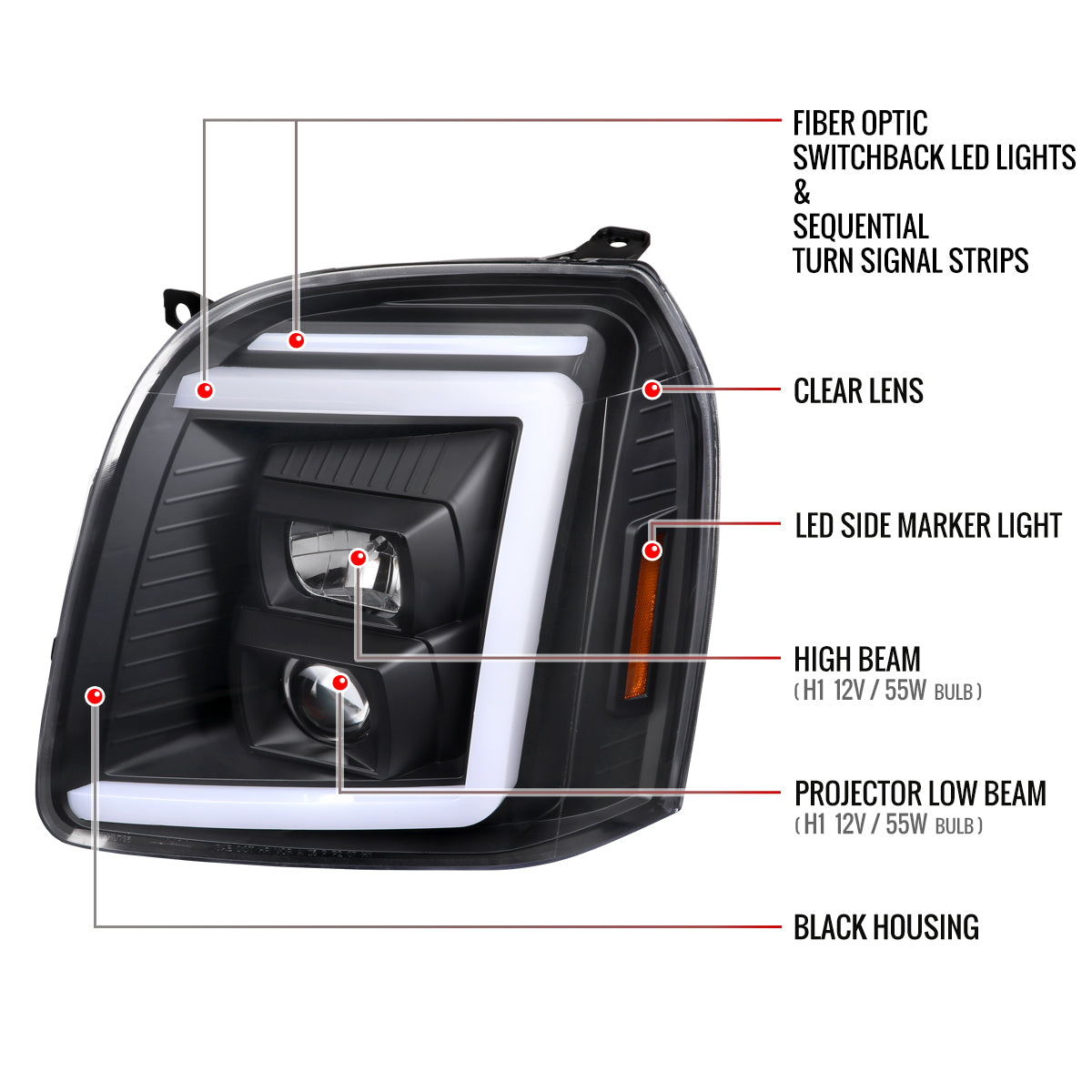 Spec-D 2007-2014 GMC Yukon/XL 1500/XL 2500 Switchback Sequential LED Turn Signal Projector Black Headlights