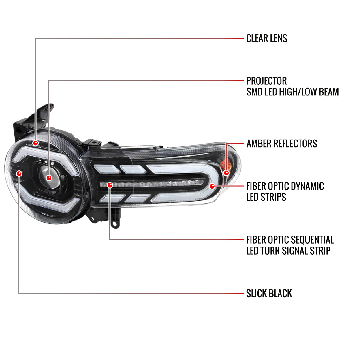 Spec-D 2007-2014 Toyota FJ Cruiser Full LED Projector with Sequential LED Turn Signal Black Headlights