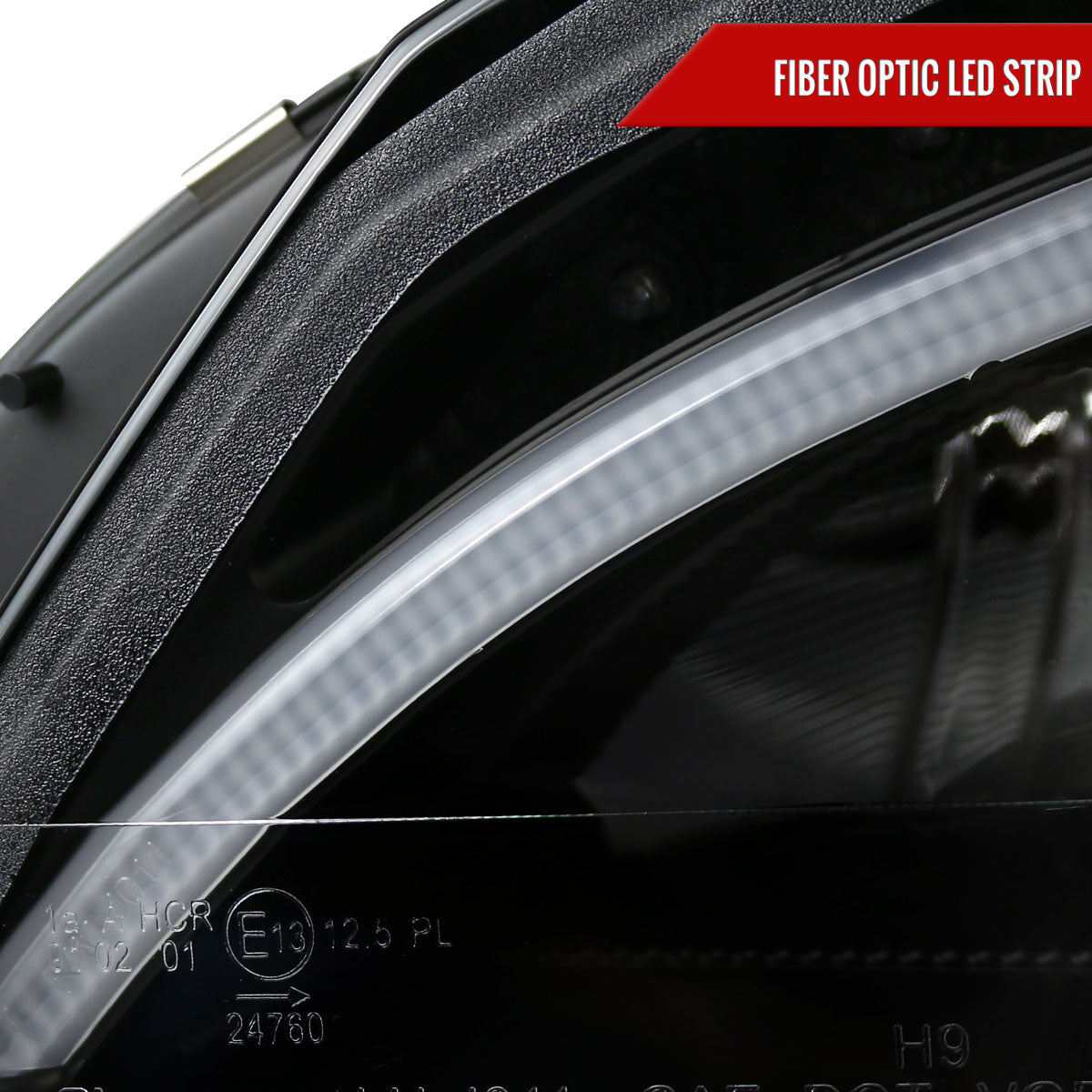 - Matte black housing, clear lens projector headlights with LED light bar & LED turn signal lights