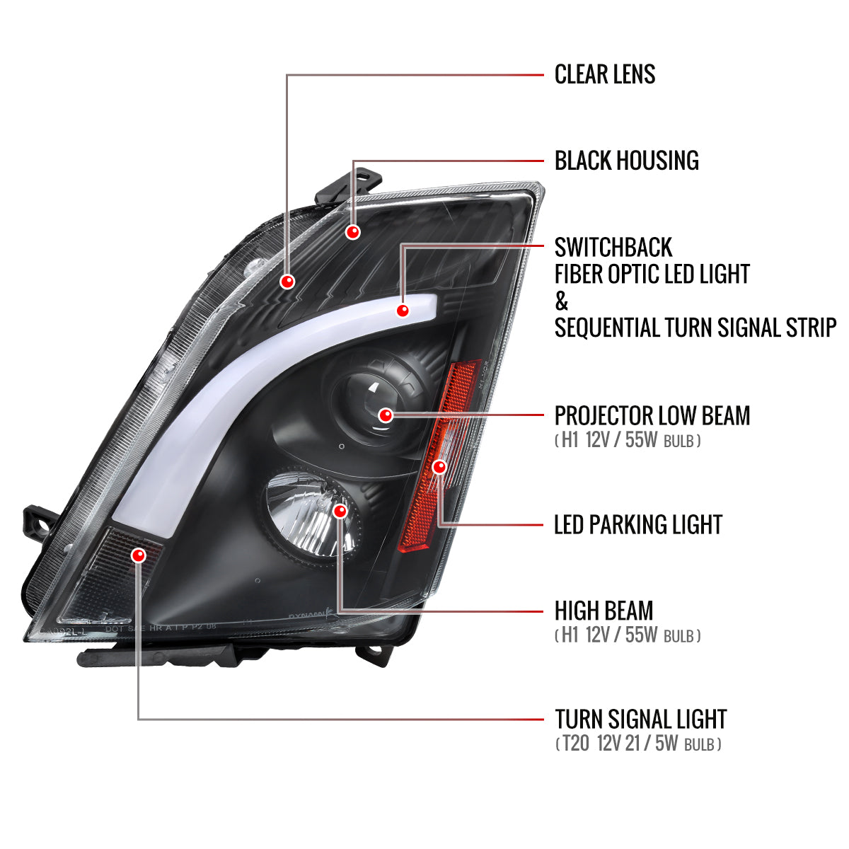 Spec-D 2008-2014 Cadillac CTS Switchback Sequential LED Bar Projector Black Headlights