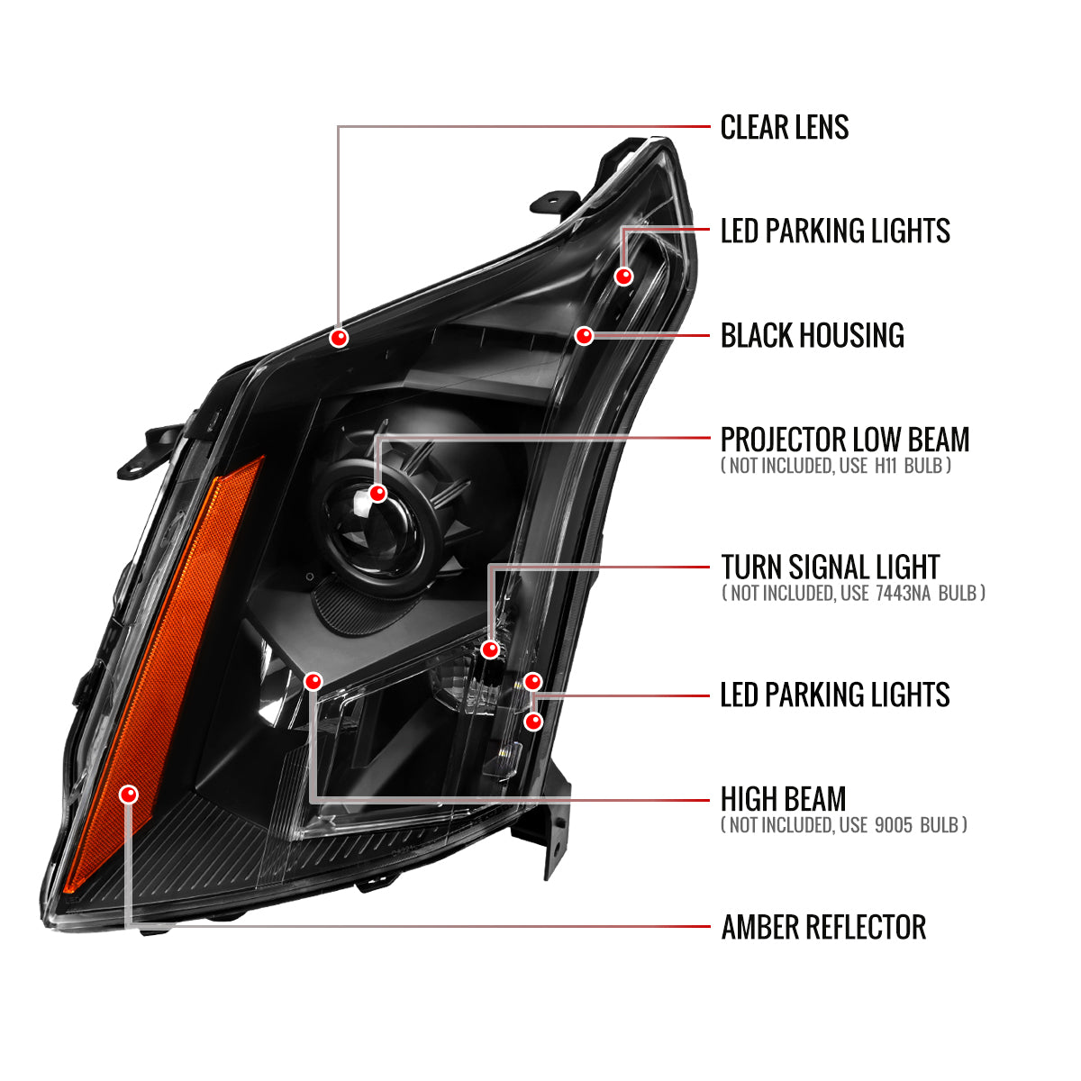 Spec-D 2010-2016 Cadillac SRX Projector Black Headlights