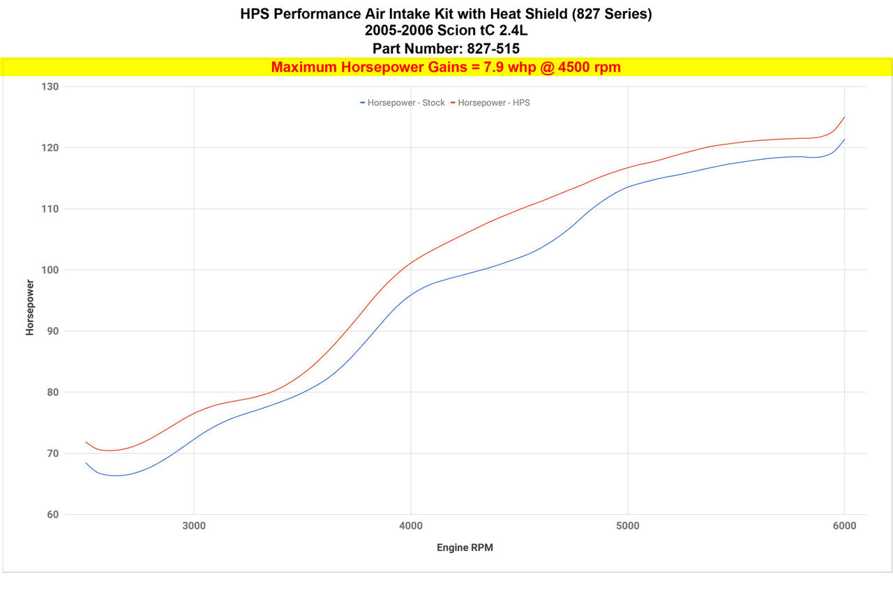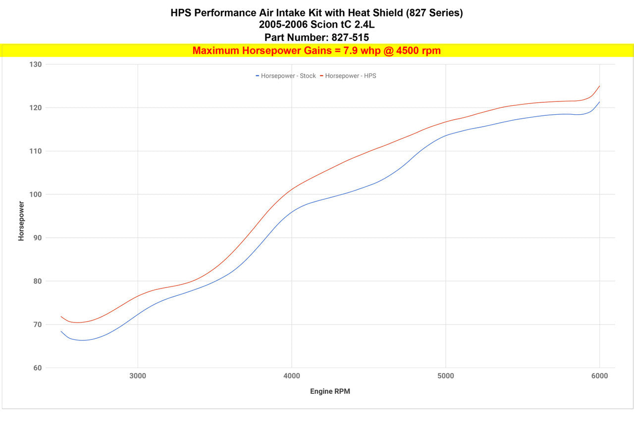 HPS Red Short ram Air Intake Kit With Heat Shield is Fine-tuned Performance to produce dyno proven performance gains - increase horsepower +7.9 whp , torque +9.2 ft/lbs and improve throttle response. Does NOT require tuning after the install. Red light weight 3 inch mandrel-bent aluminum alloy piping replaces the stock restrictive air box and optimize the air flow with excellent heat dissipation and long lasting durability.