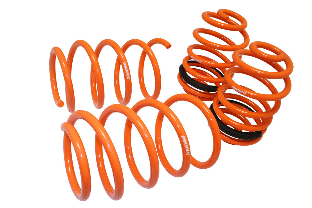 The result is a spring that specifically offers race-car handling, yet maintains smooth and comfortable ride characteristics. Carefully matched springs rates provide exceptional handling, response, control and balance. These springs offer a generous drop to your car while remaining very drivable by having enough clearance to avoid bottoming-out; and the lowered center of gravity improves performance and increases stability, as well as enhancing the appearance of the vehicle.