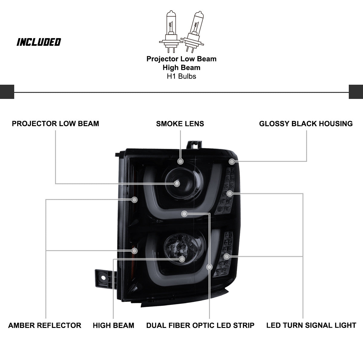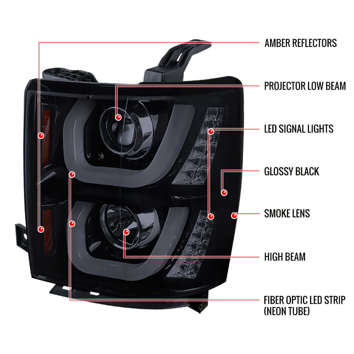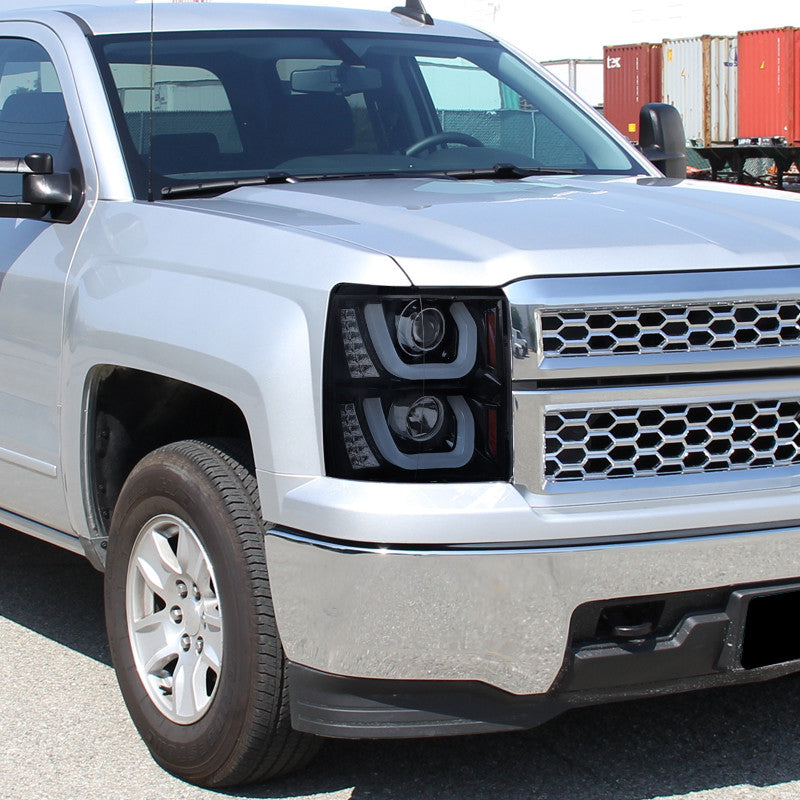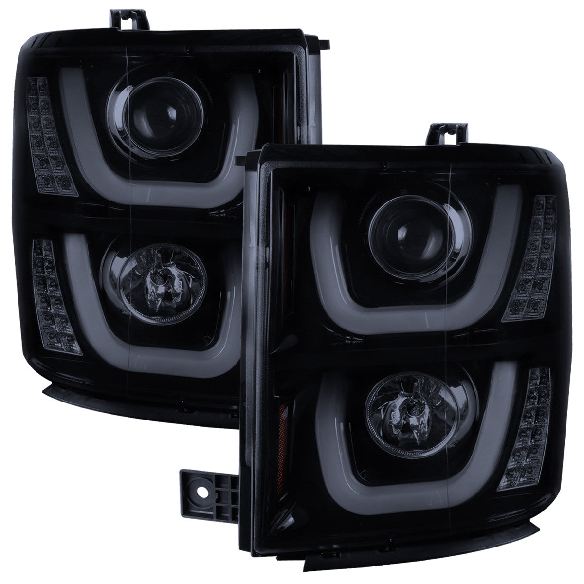 Spec-D 14-15 Silverado Projector Headlights U-Bar LED Black Smoke