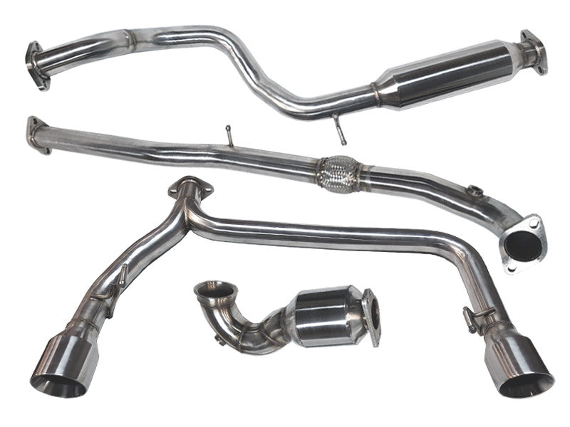 - Cat back 63.5mm (2.5 in) diameter piping with 101mm diameter exhaust tips